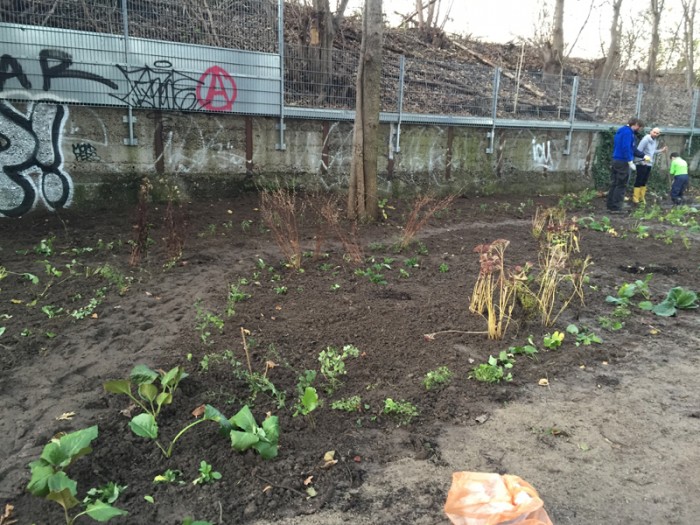 Kants Garten hat bei der Planung, Entwicklung und der ersten Bepflanzung unterstützt. Dank des Amtes für Umwelt und Grün darf eine recht große Fläche genutzt werden, wurde und wird diese von den Wirtschaftsbetrieben pflanzfertig vorbereitet. Das ist eine super Unterstützung. Die ersten Pflanzen kamen aus den Gärten von Beate und Susanne. Weitere Pflanzen folgen in den kommenden Wochen von Sabine und auch aus Kants Garten wo im Frühjahr die dringend notwendige Teilung der Stauden stattfindet.